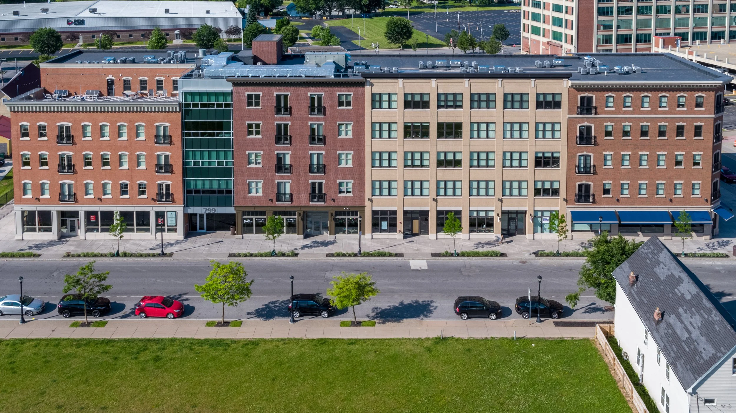 Millrace Commons is an 85,000 sq. ft. mixed use building at 799 Seneca Street in the heart of Larkinville. The building includes 70 market rate rental apartments made up of studio, one and two bedroom units, and 13,000 square feet of ground floor retail. Residential amenities include onsite parking, an outdoor pool, fire pits, grill, roof deck, fitness center, dog run and indoor bike storage. Onsite retailers include Toasted coffee shop, Magic Bear Beer Cellar, Blue Table Chocolates and more!